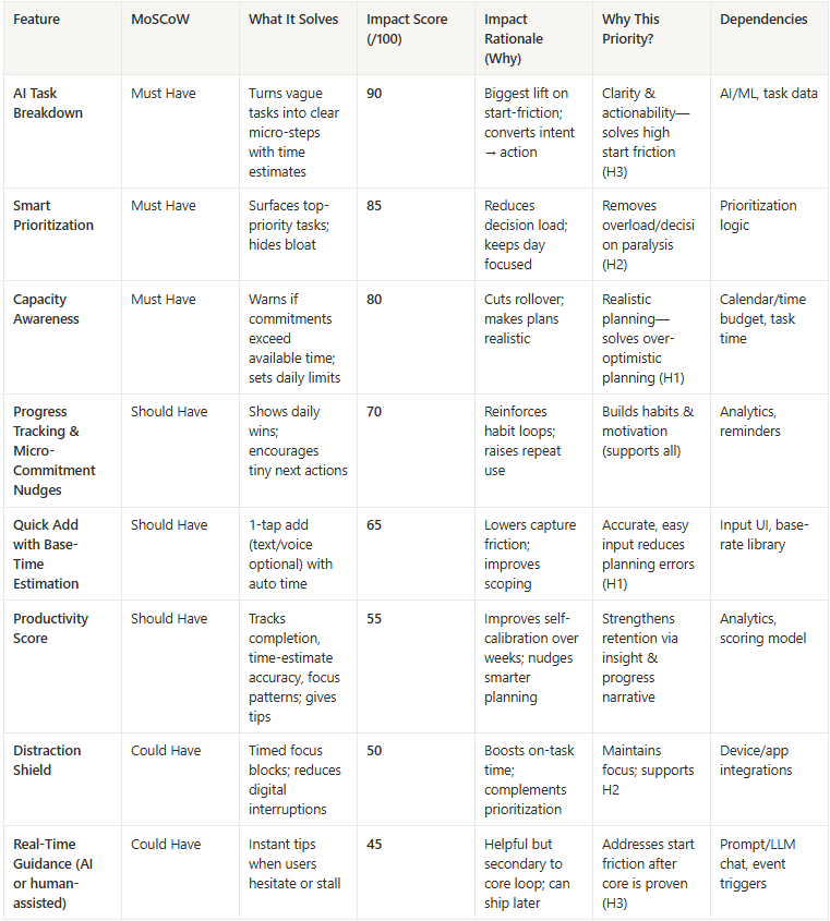 Improved Task Completion: Smart prioritization and micro-step tracking improved daily completion rates and formed stronger productivity habits.